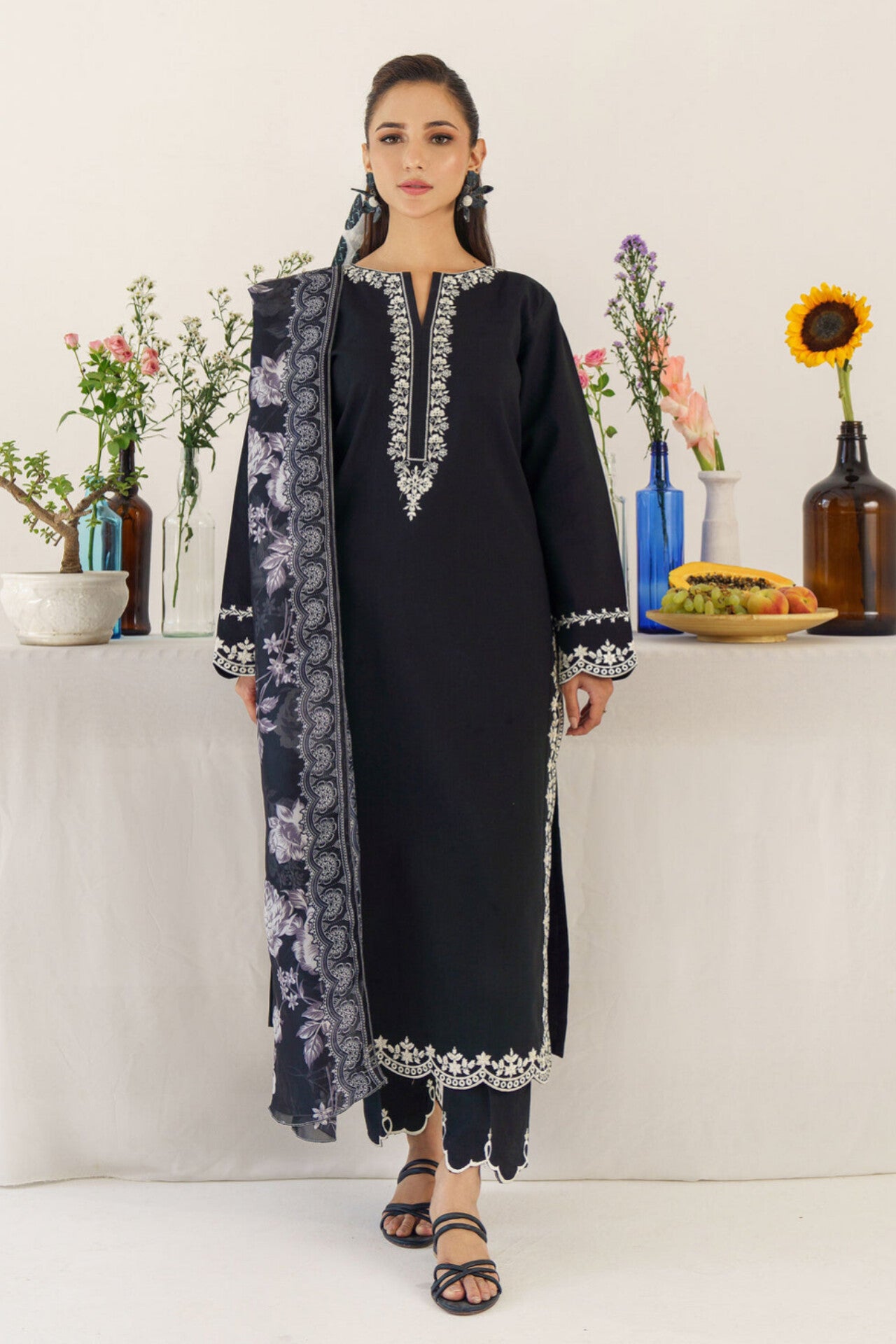 HANA |3PC DHANAK EMBROIDERED SHIRT| A # 31074